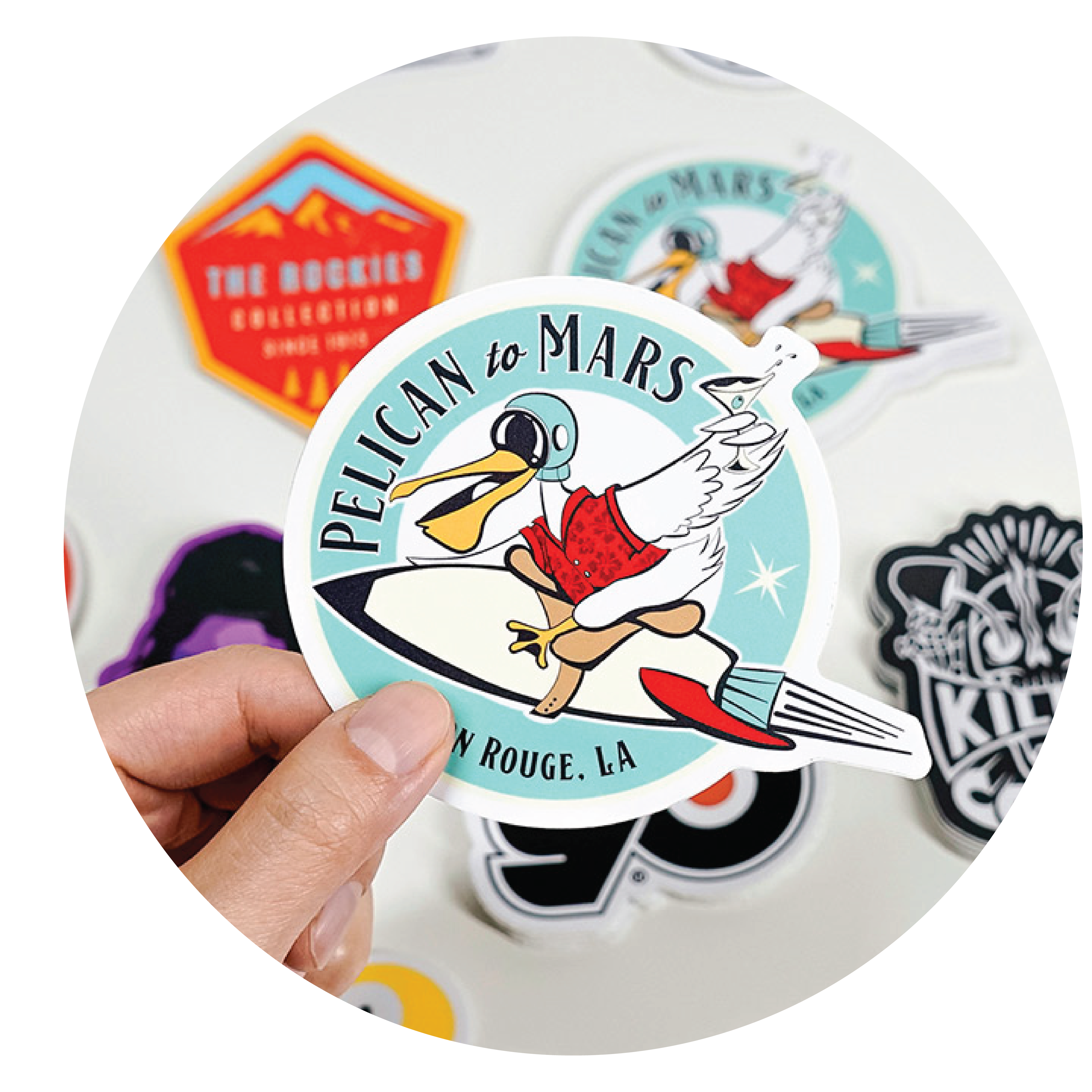 Tất cả các tem nhãn tùy chỉnh của chúng tôi đều được sản xuất và in trên giấy decal hoặc nhựa vinyl bền.